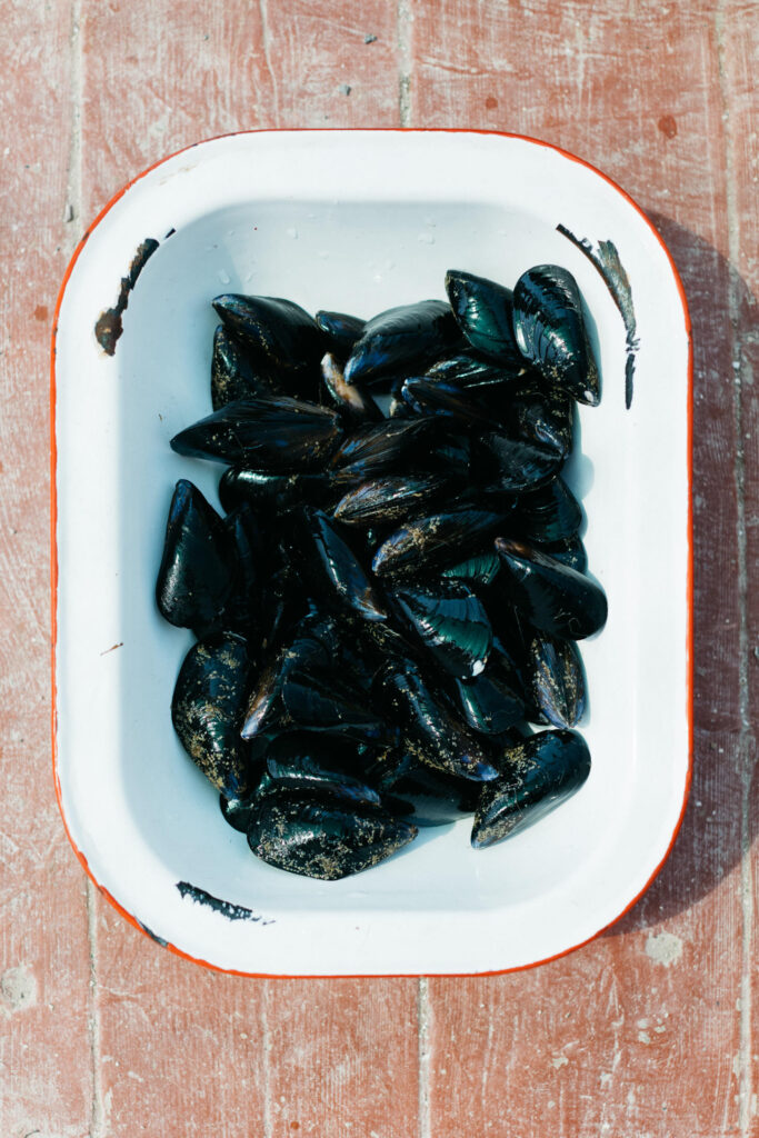 Leyre Gómez, hija de César, manda en la batea de Les Perles, y aunque su mundo es de la ostra Valenciana, comparte en nuestra visita su receta familiar de la clòtxina que recoge de la batea de sus vecinos.